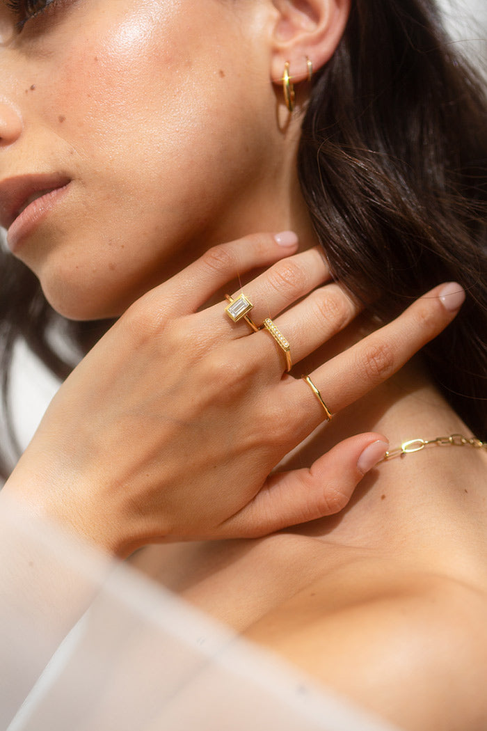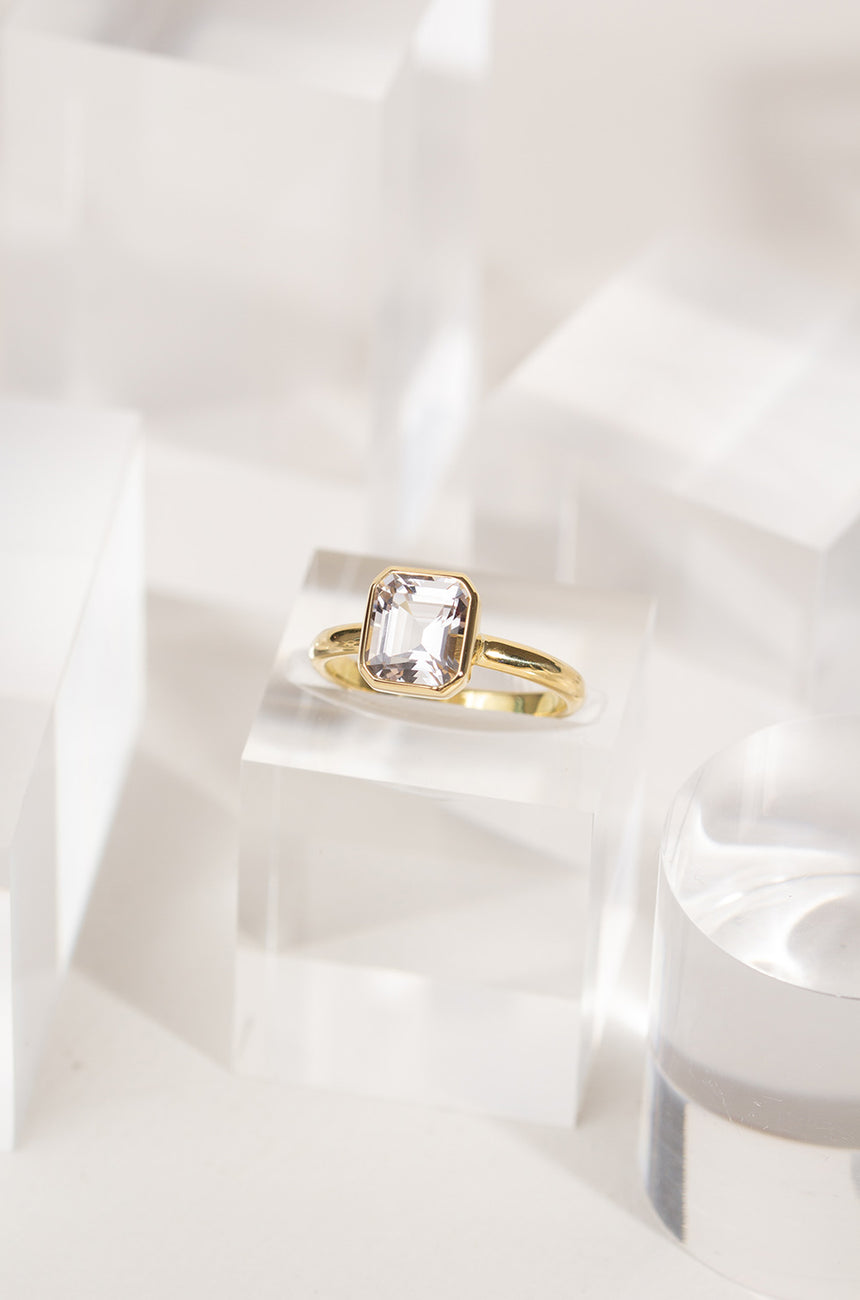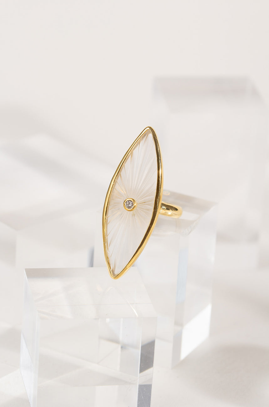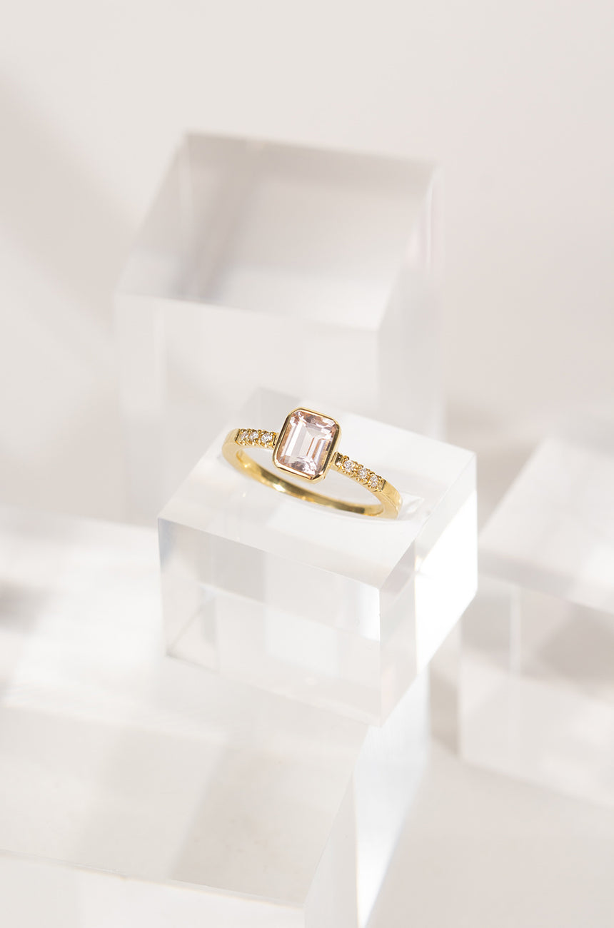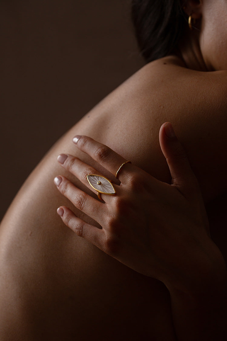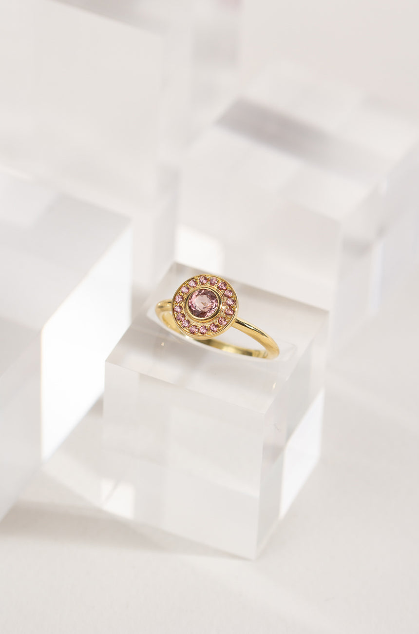 Cada anillo, cuidadosamente confeccionado, fusiona la delicadeza con la fortaleza, utilizando gemas provenientes de las profundidades de la tierra, para converstirse en joyas con destellos luminosos. Desde diamantes champagne hasta piezas inspiradas en las flores, la colección refleja una armoniosa unión entre lo terrenal y lo divino.