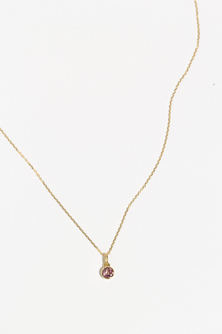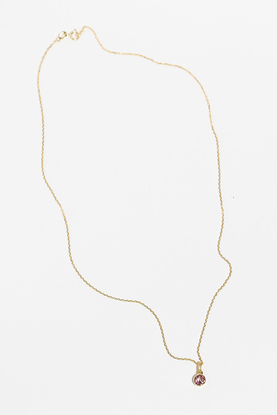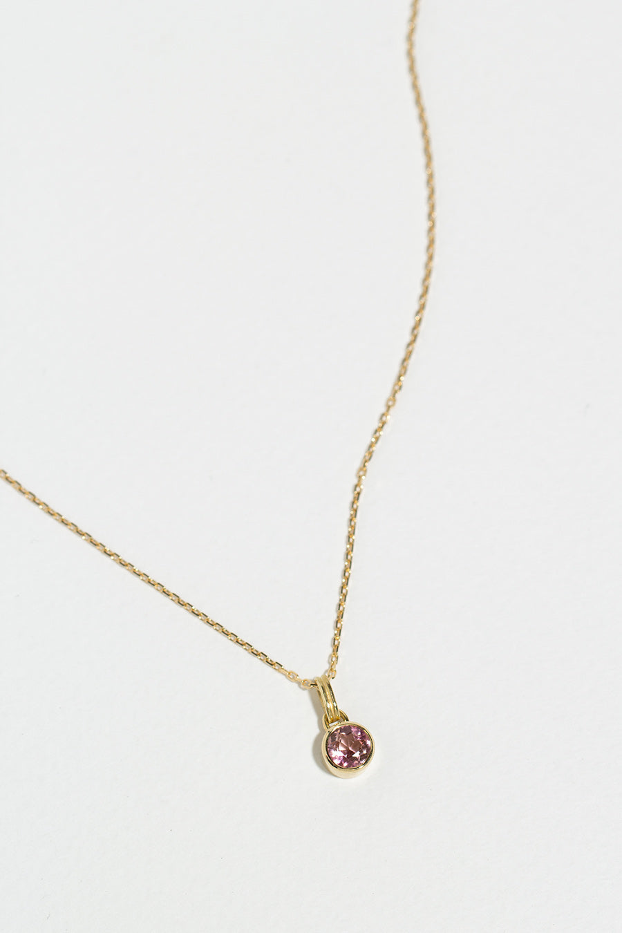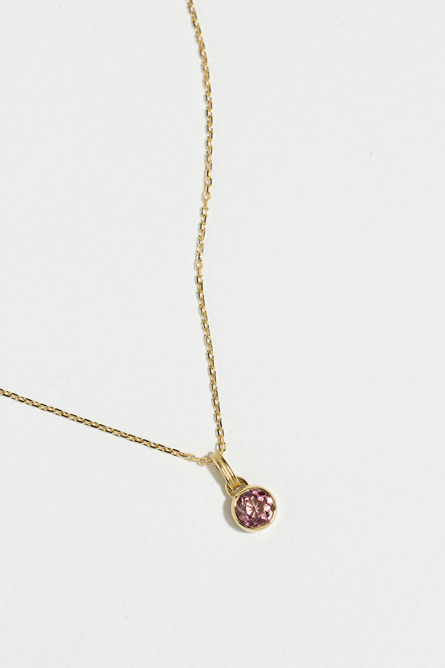 Colgante tipo punto de luz de turmalina rosada de 0,5ct. Confeccionado en oro amarillo 18K. Largo total del colgante 12 mm, peso total 0,85 grs. Opcional: Agregar cadena en oro amarillo 18K, largo 45cm peso aprox 1,2 grs. En la foto se utiliza la cadena de 45 cm. Pieza en stock.