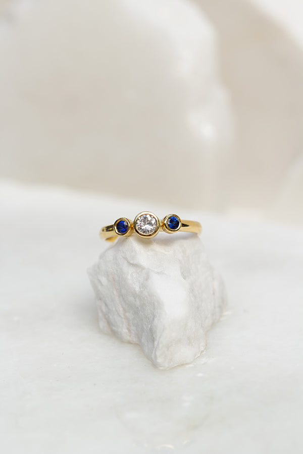 ANILLO TRIO DIAMANTE ZAFIROS