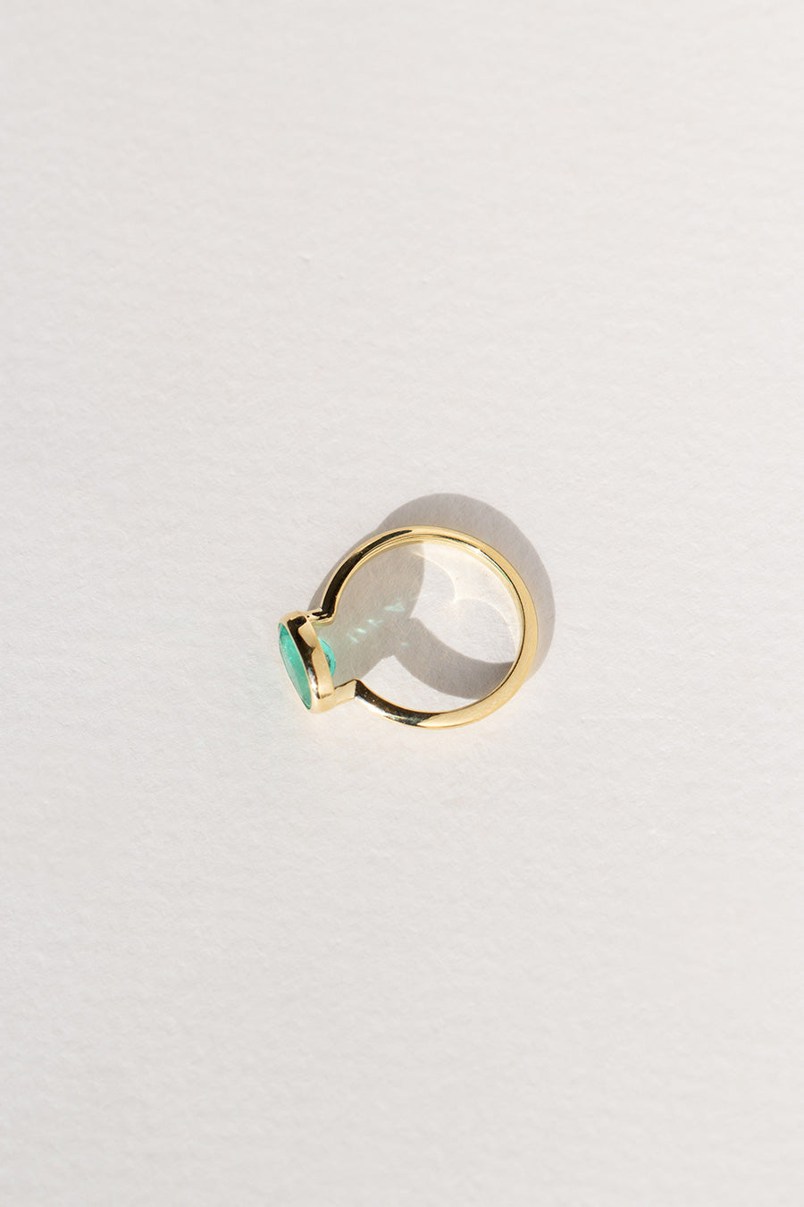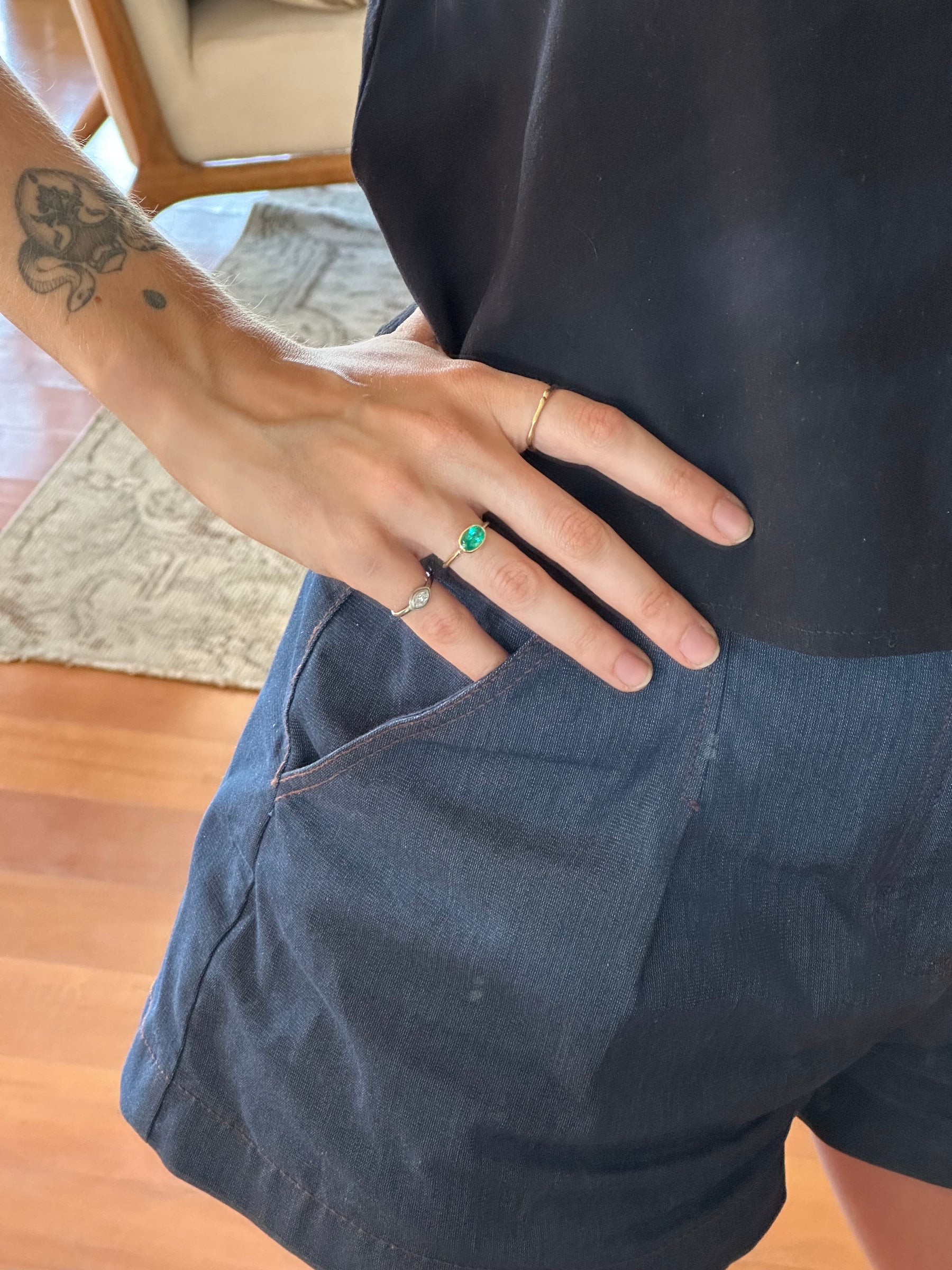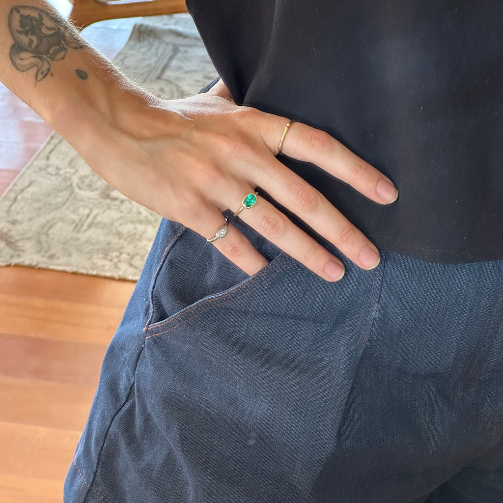 Anillo talla 10 EN STOCK. Anillo de esmeralda colombiana natural, calidad AAA, talla ovalada de 1 ct, 8x6 mm. Confeccionado en oro amarillo 18K con nuestra argolla duomo, fina y alta, para resaltar aún más la piedra. Peso aproximado 2,5 grs.