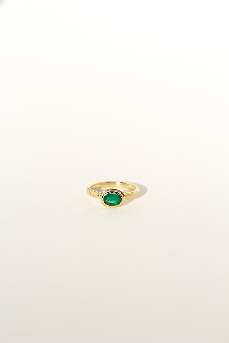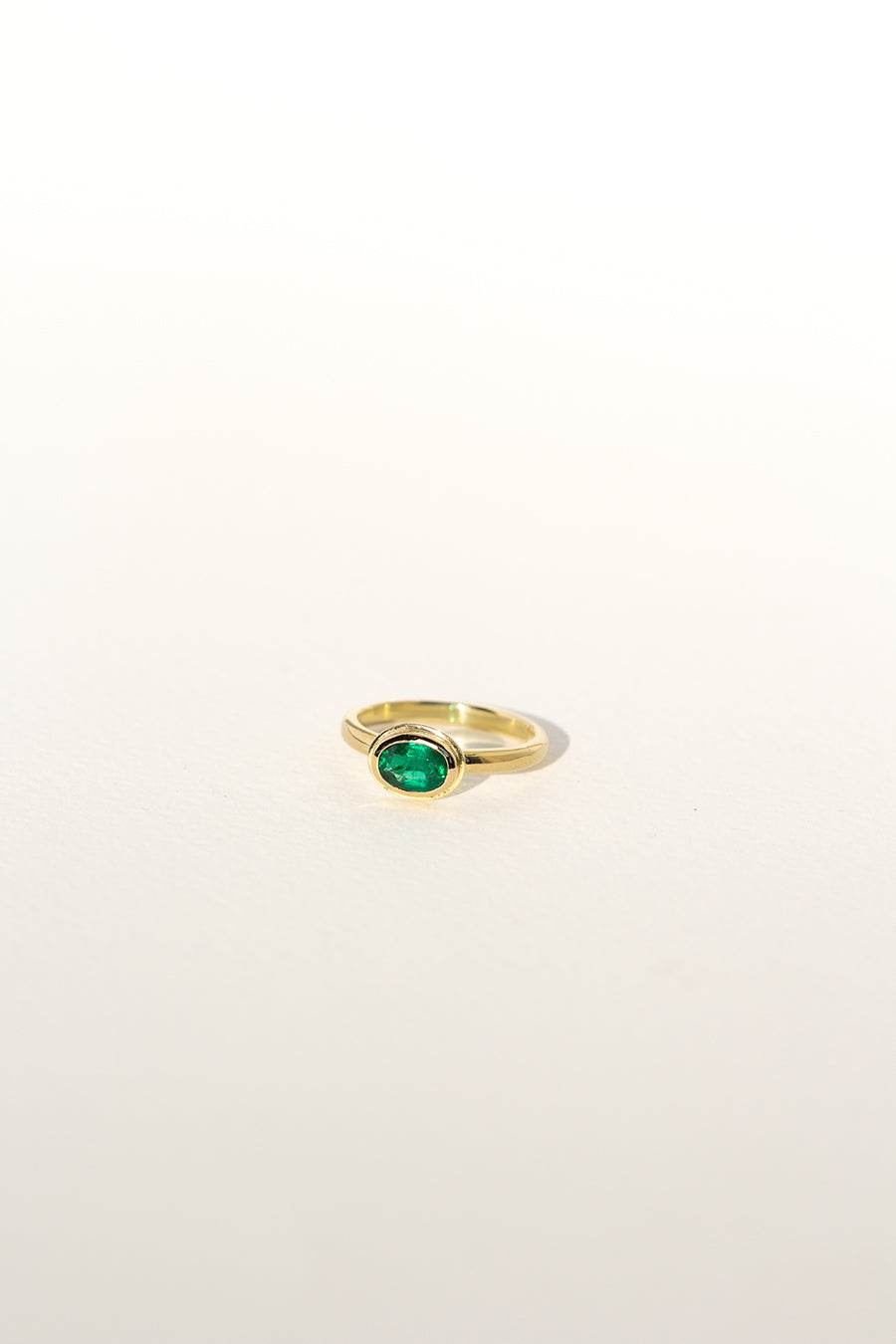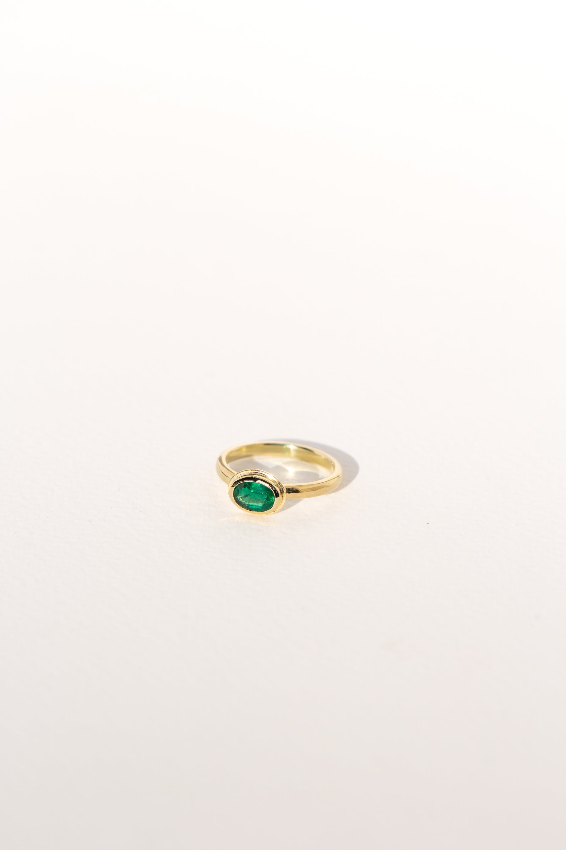 Esmeralda natural talla oval de 6x4 mm, 0,45 ct. Frente del anillo mide 8 x 6 mm. Pensado para lucir como anillo del dedo meñique, pero queda bien en cualquier dedo de la mano. Confeccionado en oro amarillo 18K, peso total del anillo 2,5 gr según la talla. Este anillo se confecciona por PRE ORDER en la talla seleccionada, el tiempo de confección es de 4 semanas. Si tienes dudas con respecto a la talla visita la guía “Cómo medir tu talla” o escríbenos por whatsapp. Este anillo se confecciona bajo pedido, en nuestro taller en Santiago de Chile.